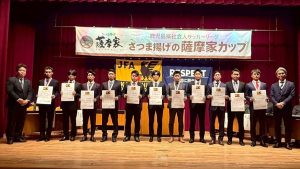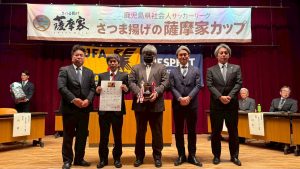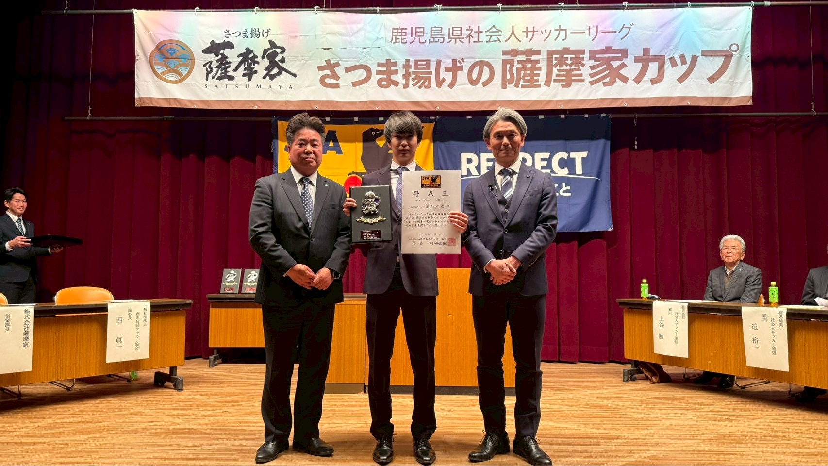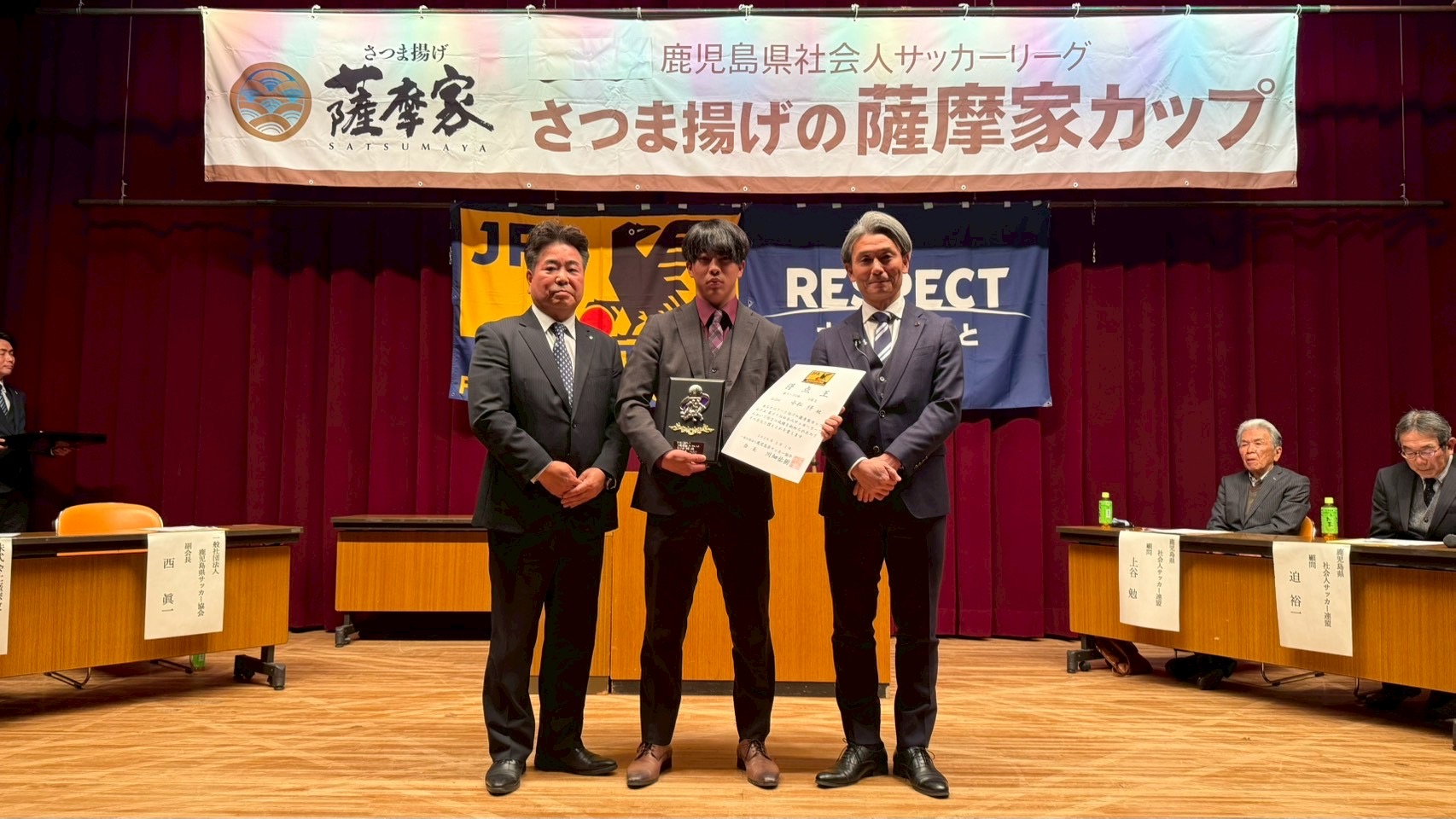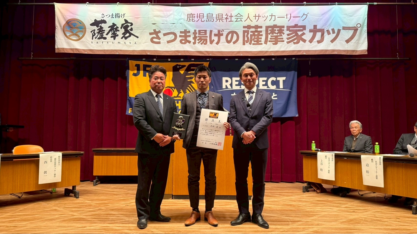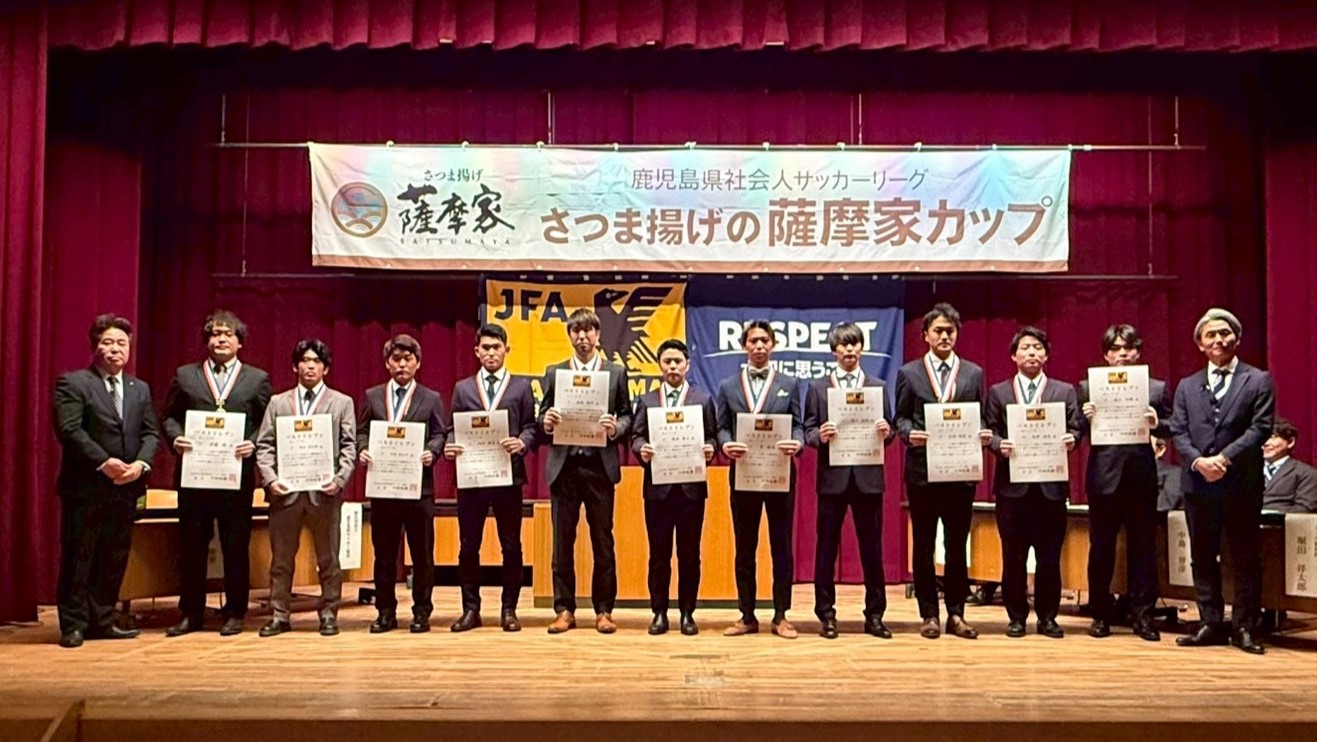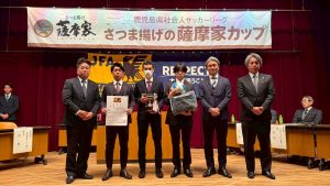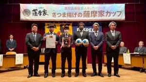 さつま揚げの薩摩家カップ第59回KFA社会人サッカーリーグ閉会式を令和8年2月1日に鹿児島県歴史・美術センター黎明館で全70チームの代表者が出席し開催されました。